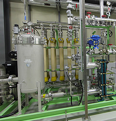 1~20ton/hまで少量から大量の処理に対応することが可能です。また、ロスイキのUF装置は分画分子量6000のUF膜を用いており、局方の注射用水に対応できます。