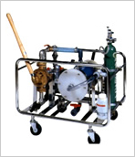 ③軽量コンパクトなキャスター付架台で、様々な場所で使用可能な移動式濾過機です。