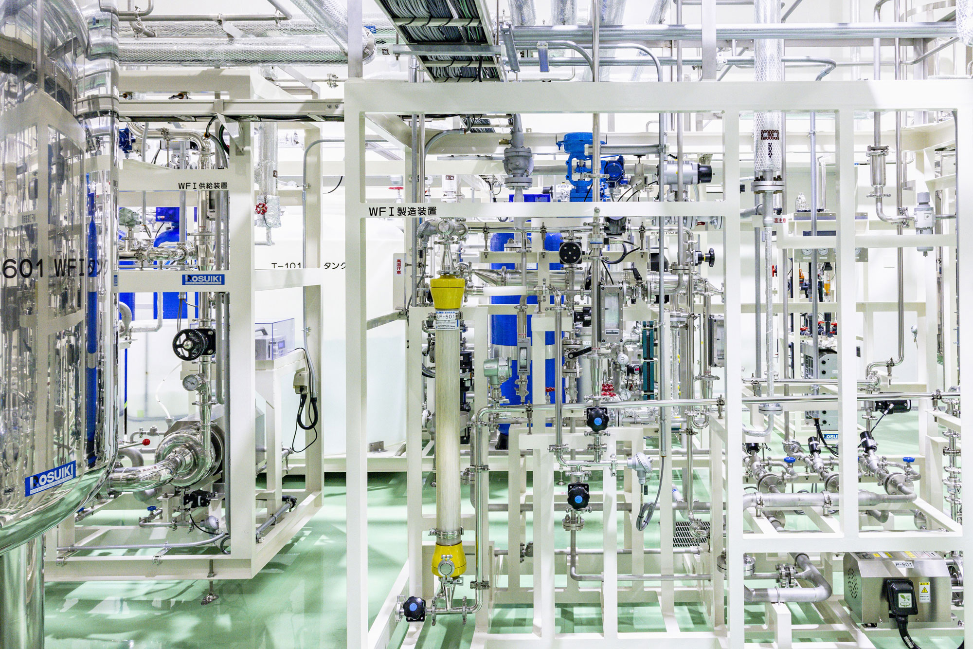 蒸留法ではなく、膜ろ過(主にUF膜)にて精製水から不純物(微生物、パイロジェン等)を分離、除去して注射用水(WFI)を製造します。